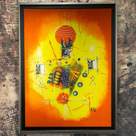 Djibril Niang est un as de la peinture sur toile. Il aime procéder à des mélanges assez imprévisibles dans ses oeuvres : patch à base d’enduit de bois, motifs dogons et même café quelques fois. Cet artiste ne finira jamais de vous surprendre.